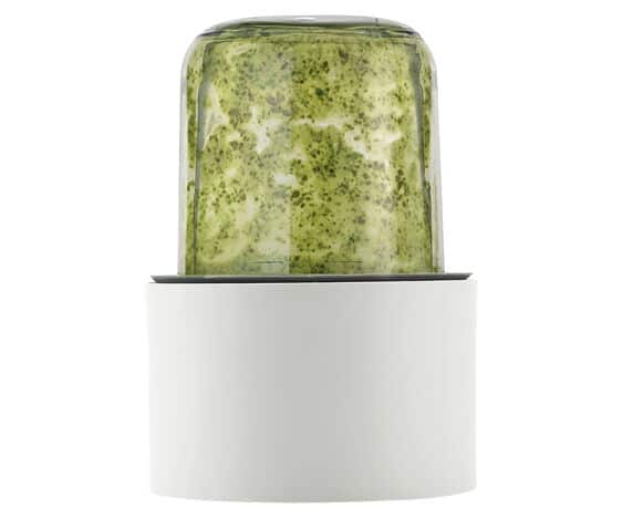 Mit der Mini-Zerkleinerer-Mühle blitzschnell frische Soßen, Dressings und Dips aus verschiedensten Zutaten zubereiten. Sie eignet sich hervorragend für das Mahlen harter Gewürze, wie sie für Currys und Marinaden verwendet werden, und selbst für die Zubereitung von Babynahrung.